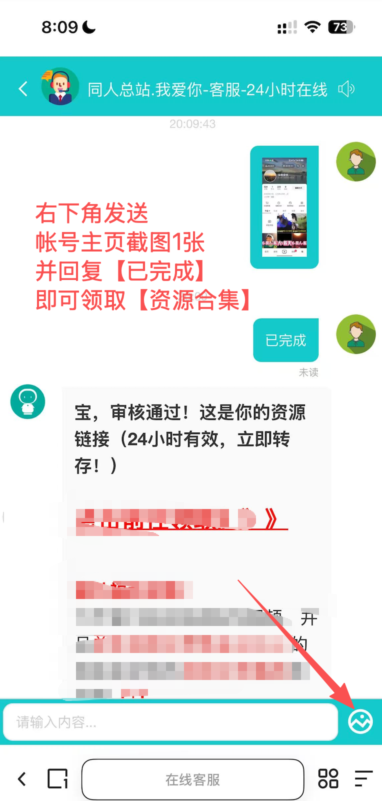 点下面客服入口发帐号主页截图+发送【已完成】领取【资源合集】